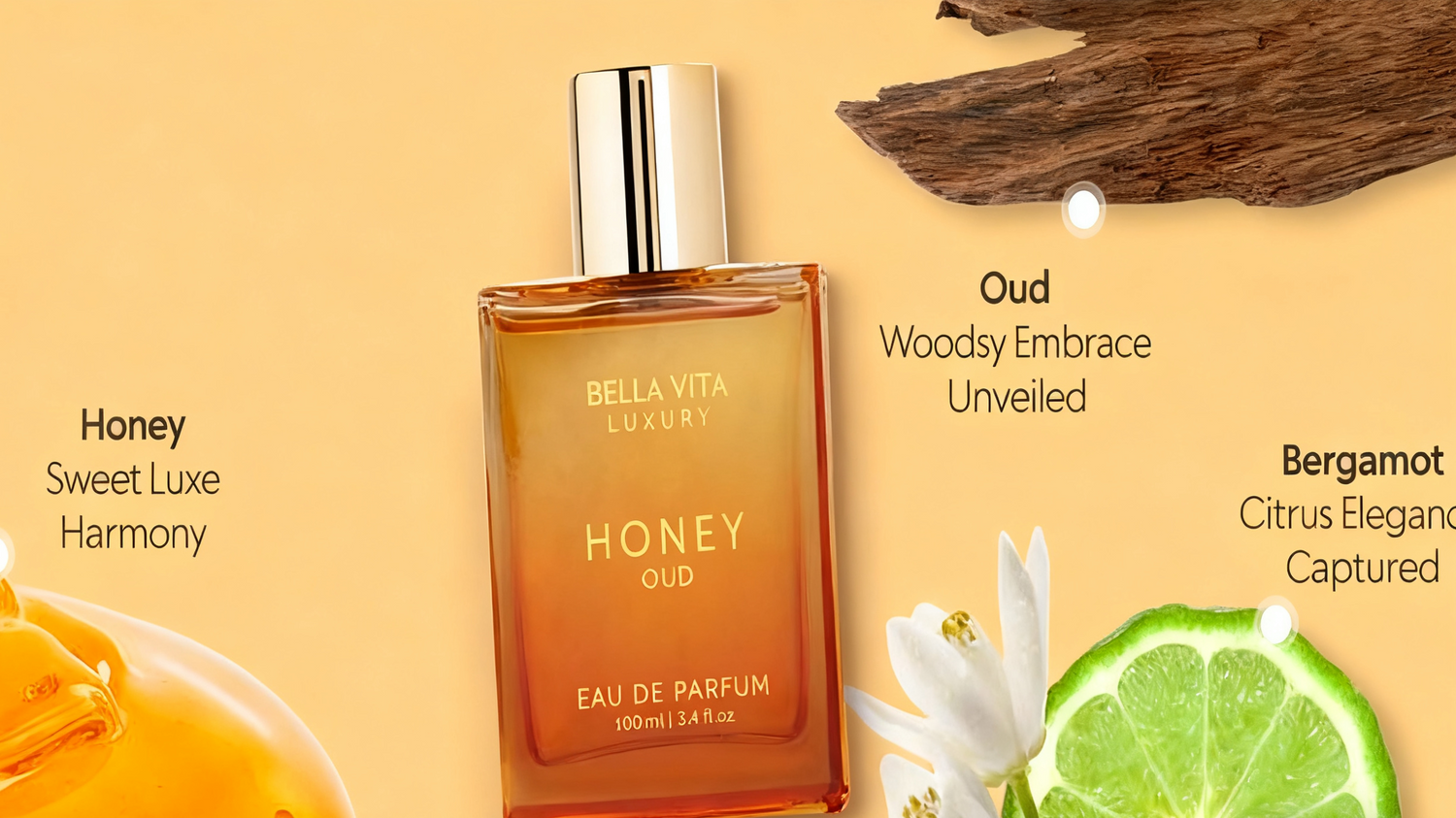 Indulge in the delightful fragrance family of sweet honey, oud, and warm spice vanilla, with top notes of honey and bergamot, middle notes of oud, rose, and patchouli, and base notes of oud, amber, vanilla, and musk.