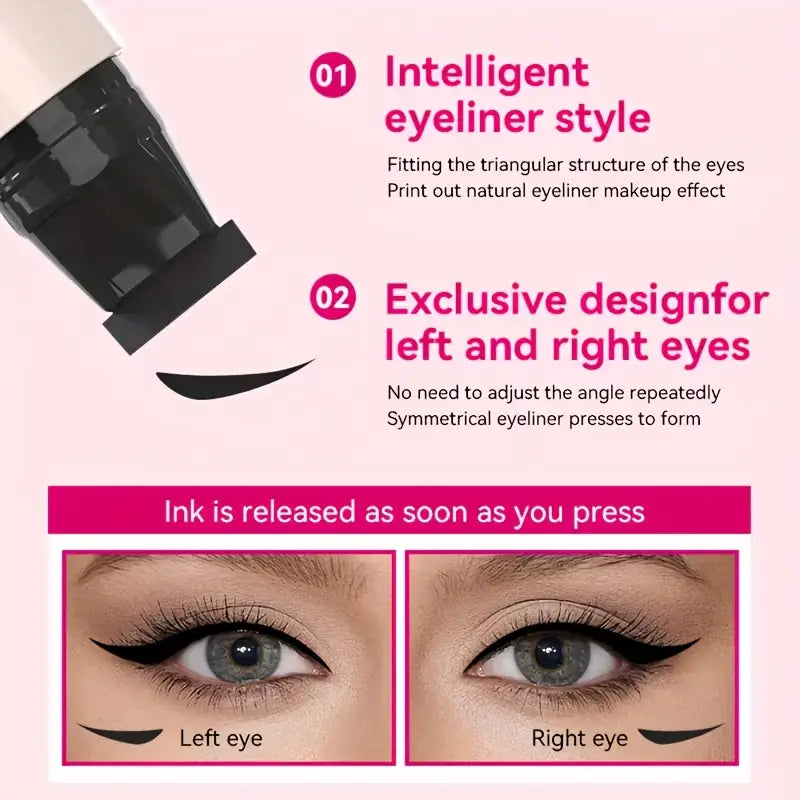 Achieve identical, sharp wings without adjustments! The innovative waterproof eyeliner tool eliminates guesswork, delivering crisp, smudge-free lines with military precision. Say goodbye to lopsided cat eyes forever