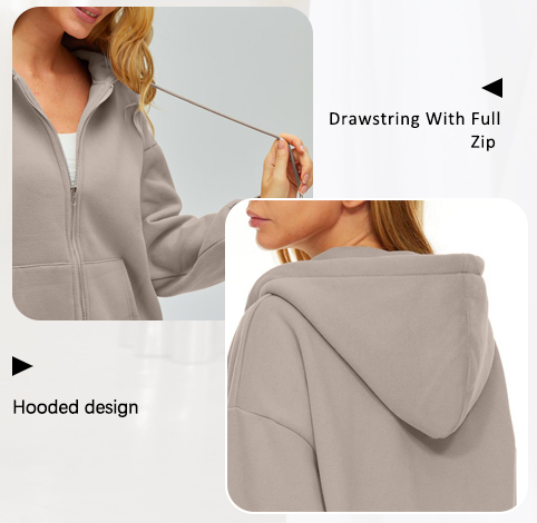 The Lightweight Hoodies Features In Full Zipper, More Easy To Dress Up Or Down. This Hooded Sweatshirts With Two Side Pockets Can Keep Your Hands Warm In The Cold Days. Women Sweatshirt Jacket Design With Casual Loose Fit Style, Suitable For Female Of All Of Ages. The Long Sleeve Hoodie Top Using Classical Plain Style, More Easy To Create Trendy Looks