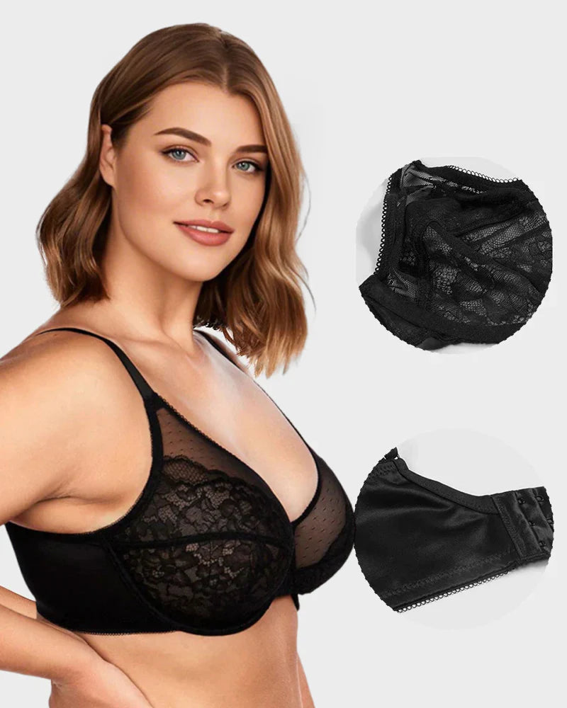 Experience the perfect combination of sexy allure and full support with our minimizer bra. Crafted with non-stretchable lace and mesh, it offers sexy containment and extra support for large breasts, keeping everything in place and minimizing your silhouette for a more flattering shape. Embrace a new level of comfort and confidence with our beautiful and comfortable bra designed specifically for full-figured women.