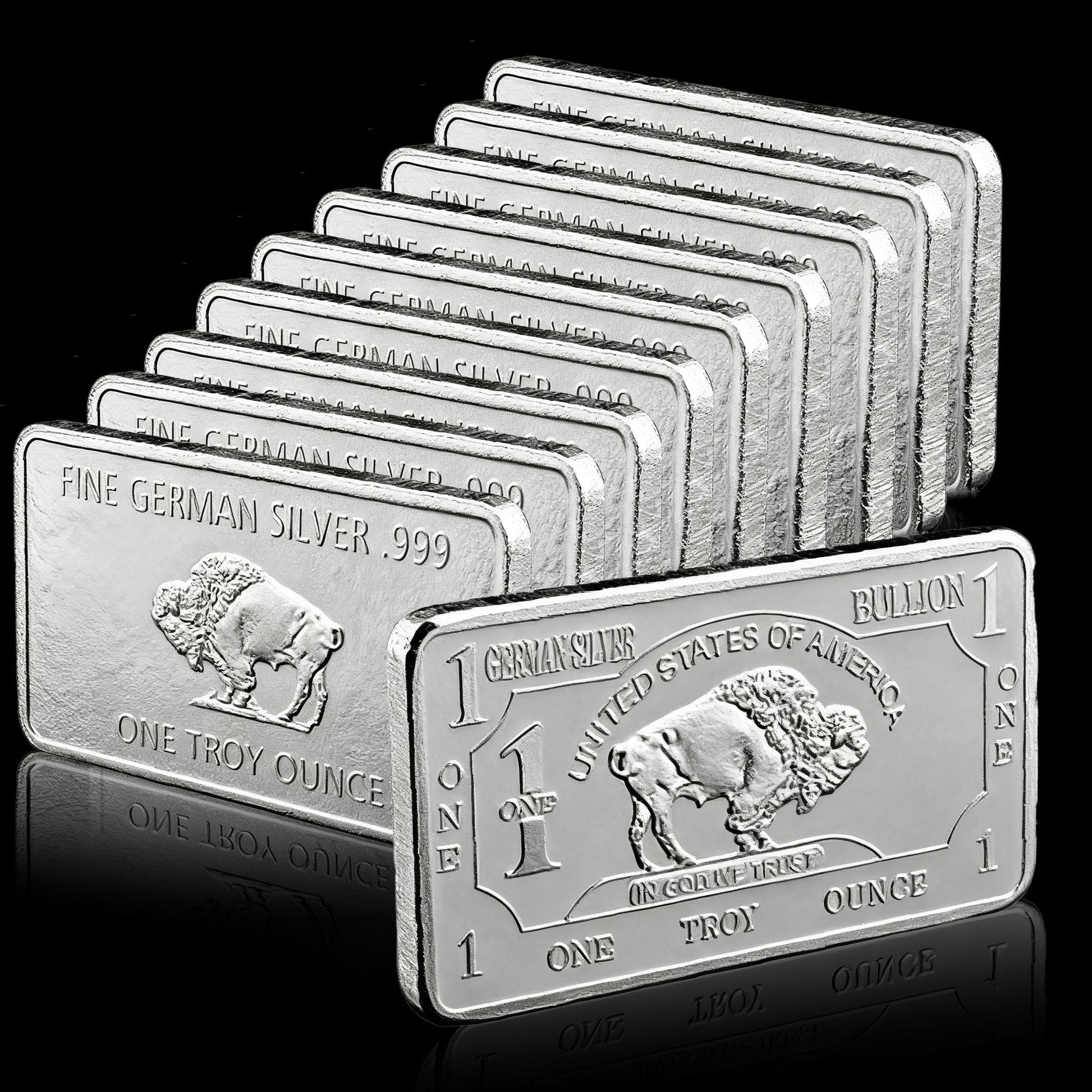 The back features a streamlined design: the bison, plus“Fine German Silver .999”and“One Troy Ounce”– emphasizing the alloy’s purity of craft (note: German silver’s “.999” refers to its alloy integrity, not fine silver content) and the bar’s weight.