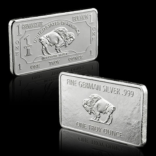 With roots in age-old metallurgical expertise, German silver forging here is celebrated for toughness, corrosion resistance, and artistry. This 1 troy ounce silver bar showcases hallmark precision: from the crisply engraved buffalo design (embodying American West heritage) to the ".999 FINE GERMAN SILVER" marking that guarantees premium quality. Whether you’re a seasoned collector or new to precious metals, owning a piece of this German silver craftsmanship feels like holding a slice of legacy—where durability, history, and value come together.