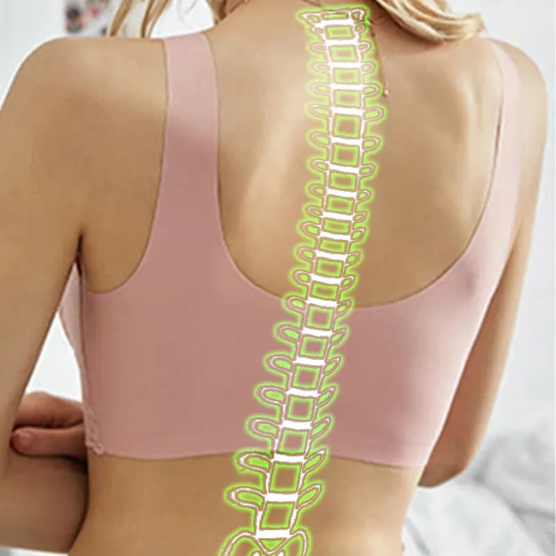 The bra uses strong elastic material and padding to lift the breasts and hold them securely in place, ensuring stable support for the chest, back, shoulders, and neck.