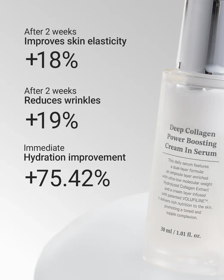 It increases skin elasticity to improve signs of aging by firming and plumping fine lines and wrinkles.