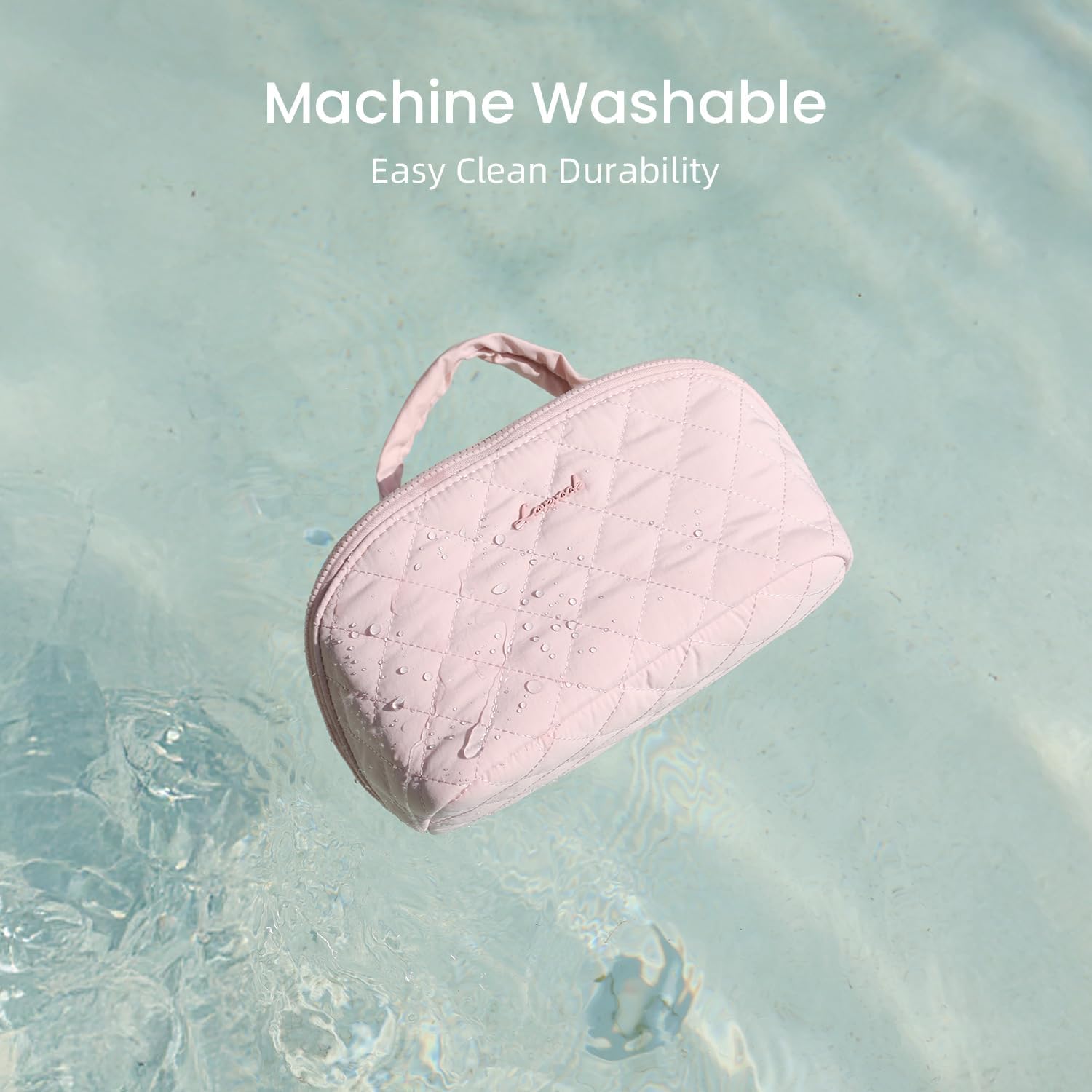 Crafted from waterproof cloud-soft puffer material, this cosmetic travel bag combines durability with style. The crush-resistant padding protects fragile items, while the machine-washable fabric ensures effortless cleaning. Lightweight yet structured, it stands upright on countertops.