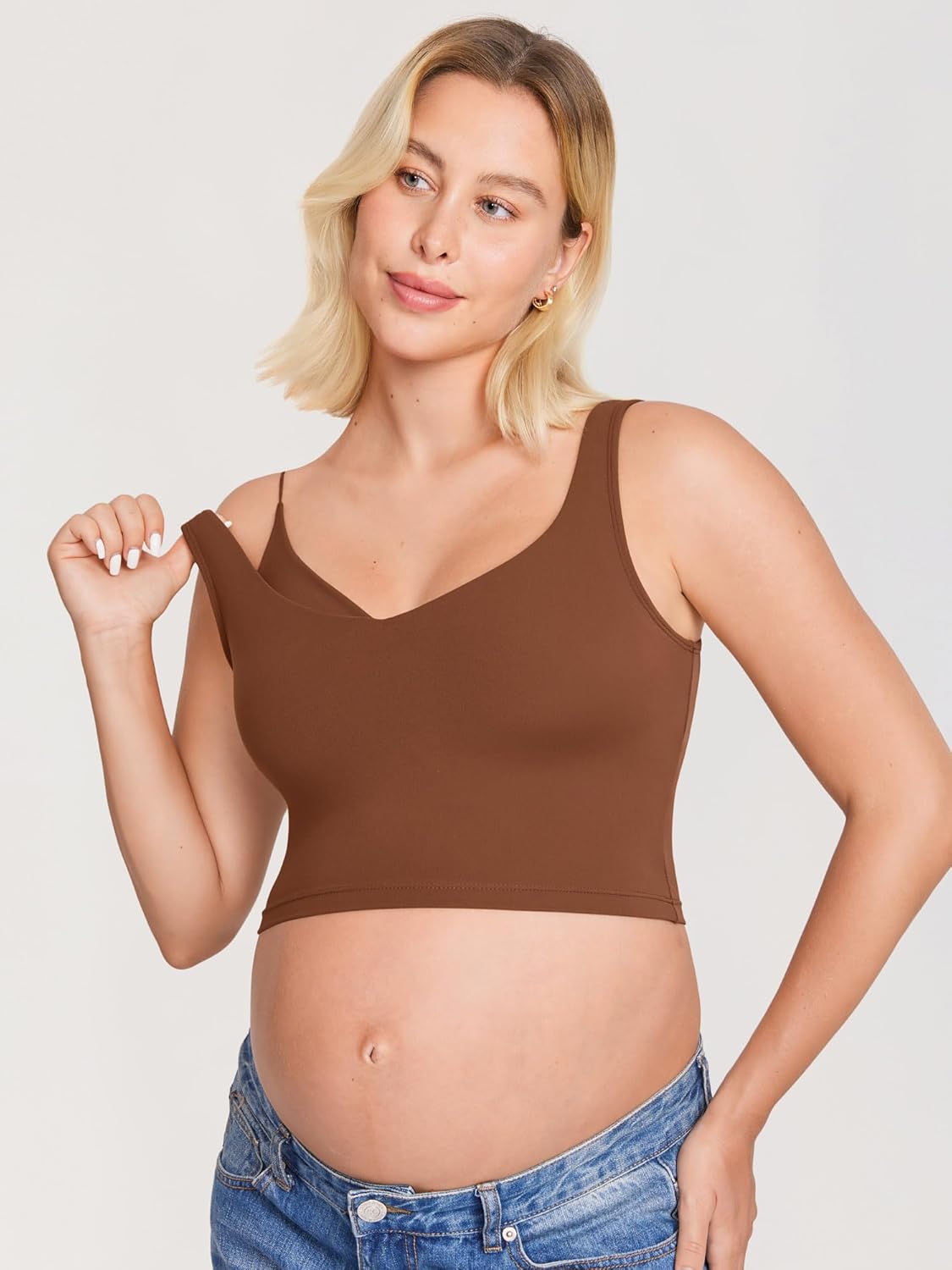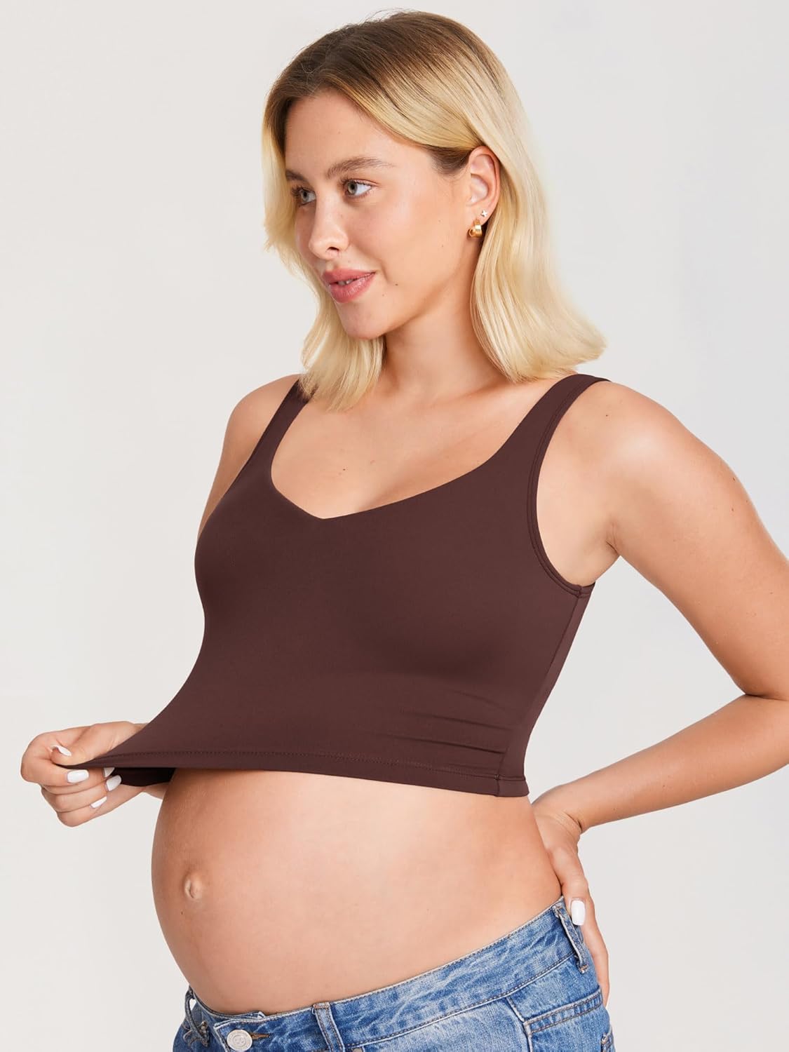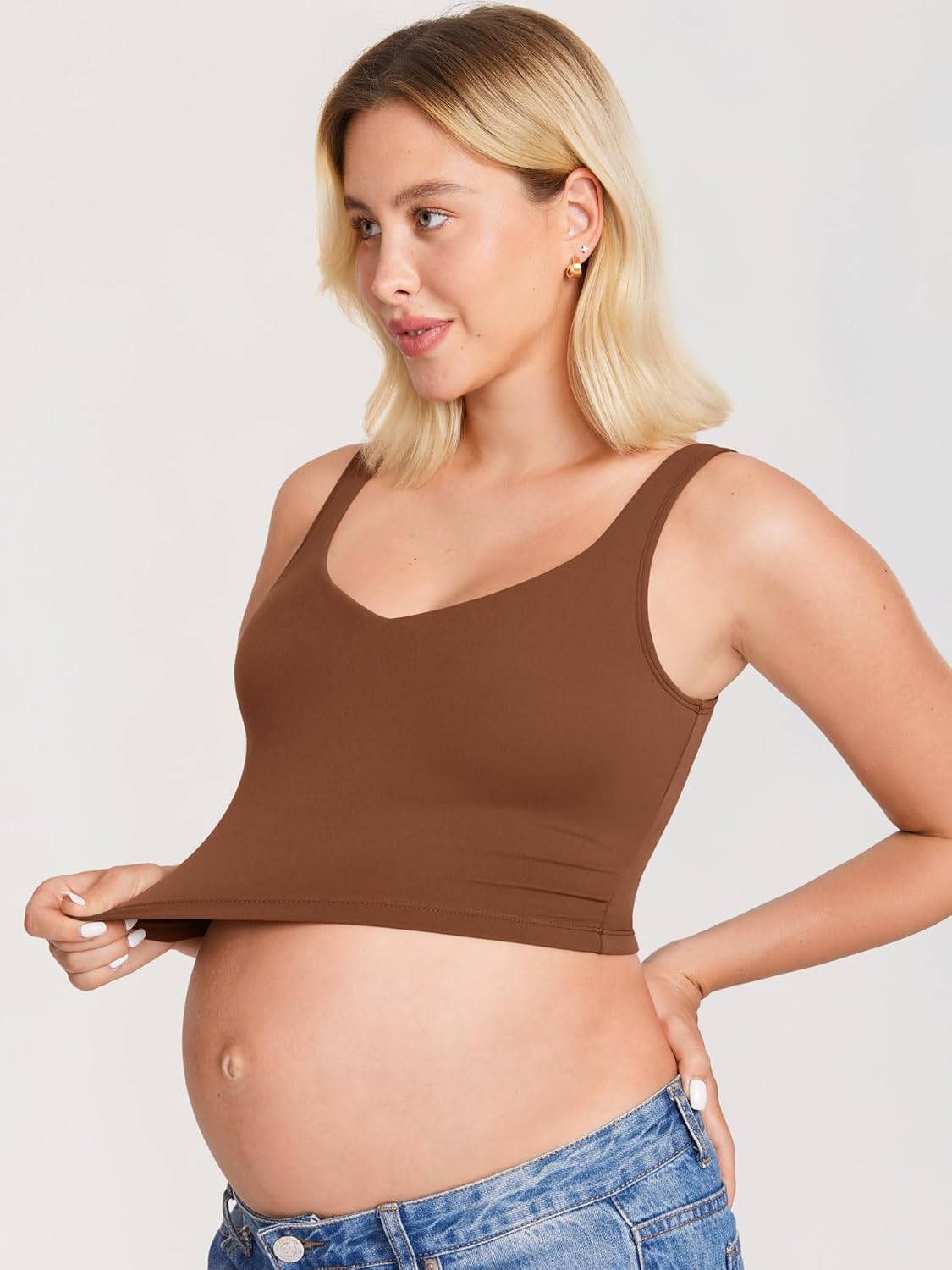 - Adapts to Your Body:Generous stretch accommodates your growing bump during pregnancy, then transitions seamlessly to postpartum life. Wear it as a nursing top, a workout crop, or a loungewear essential—one top, endless possibilities.