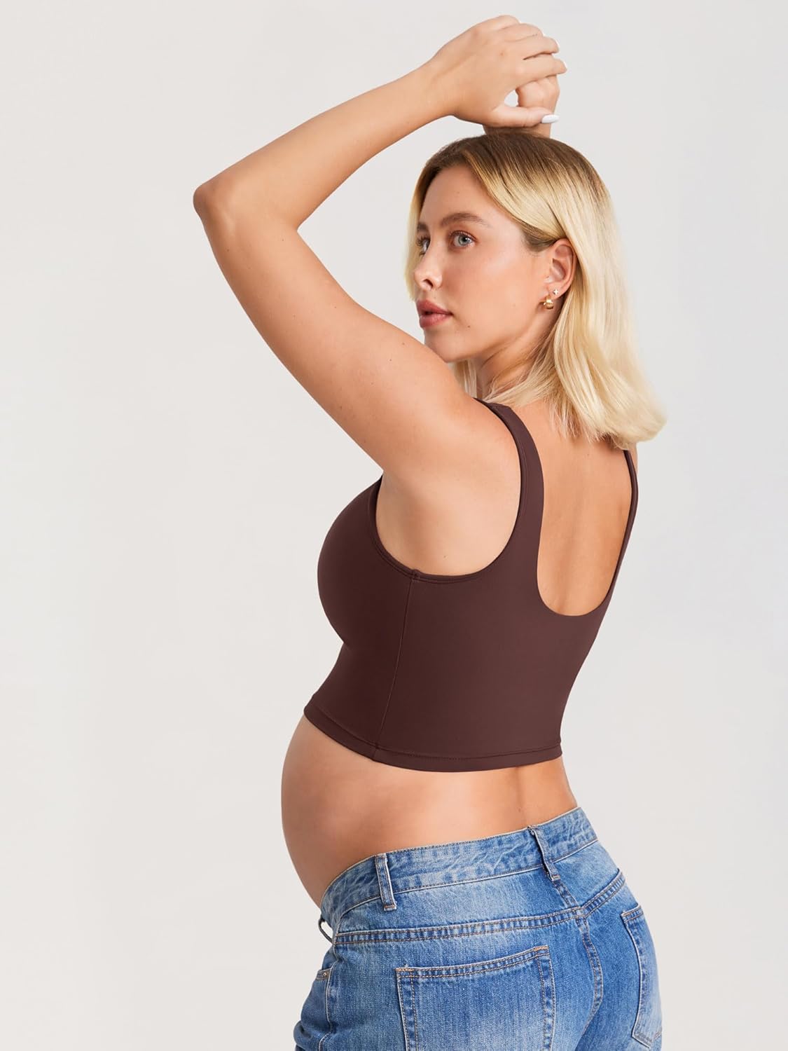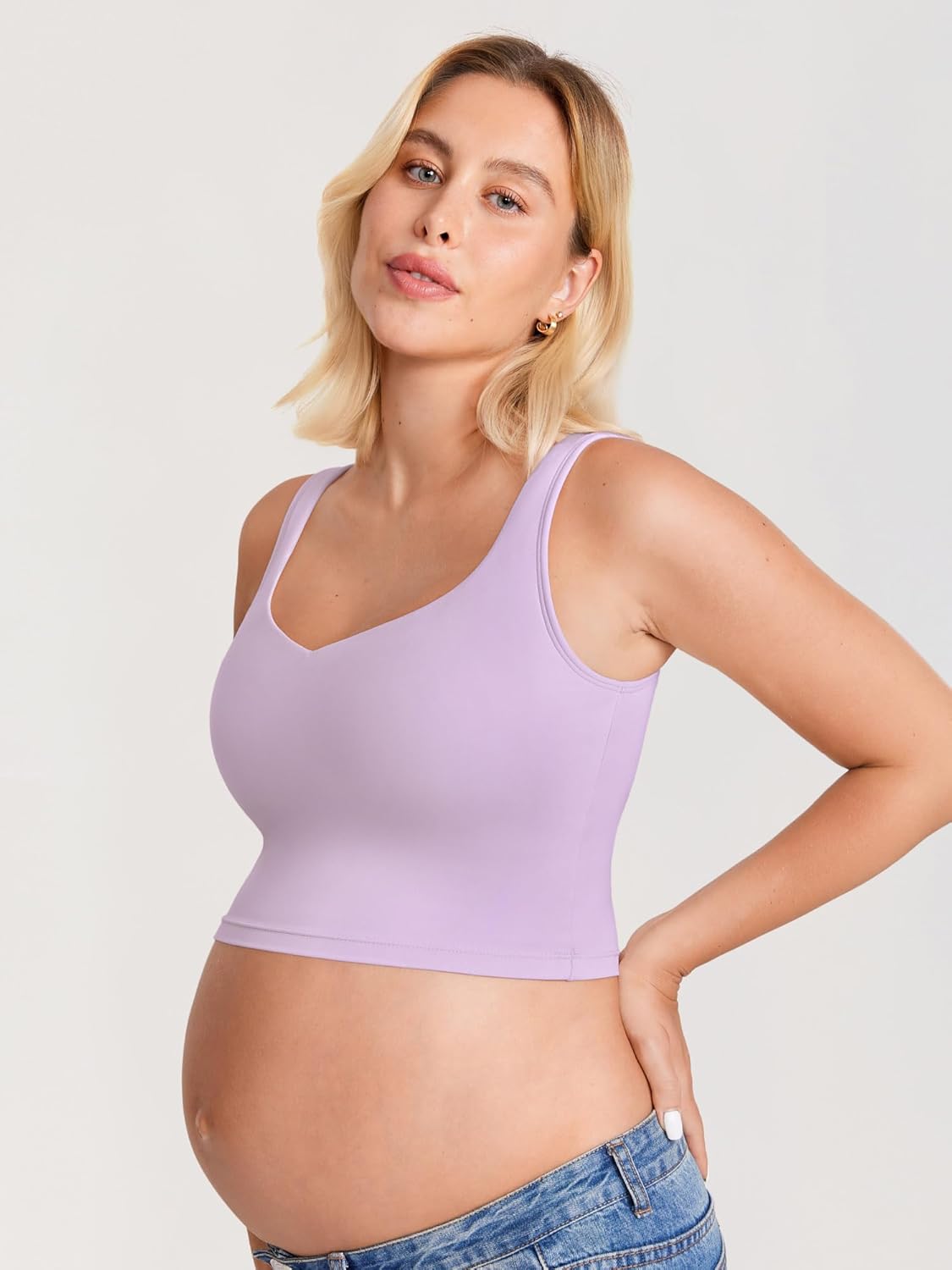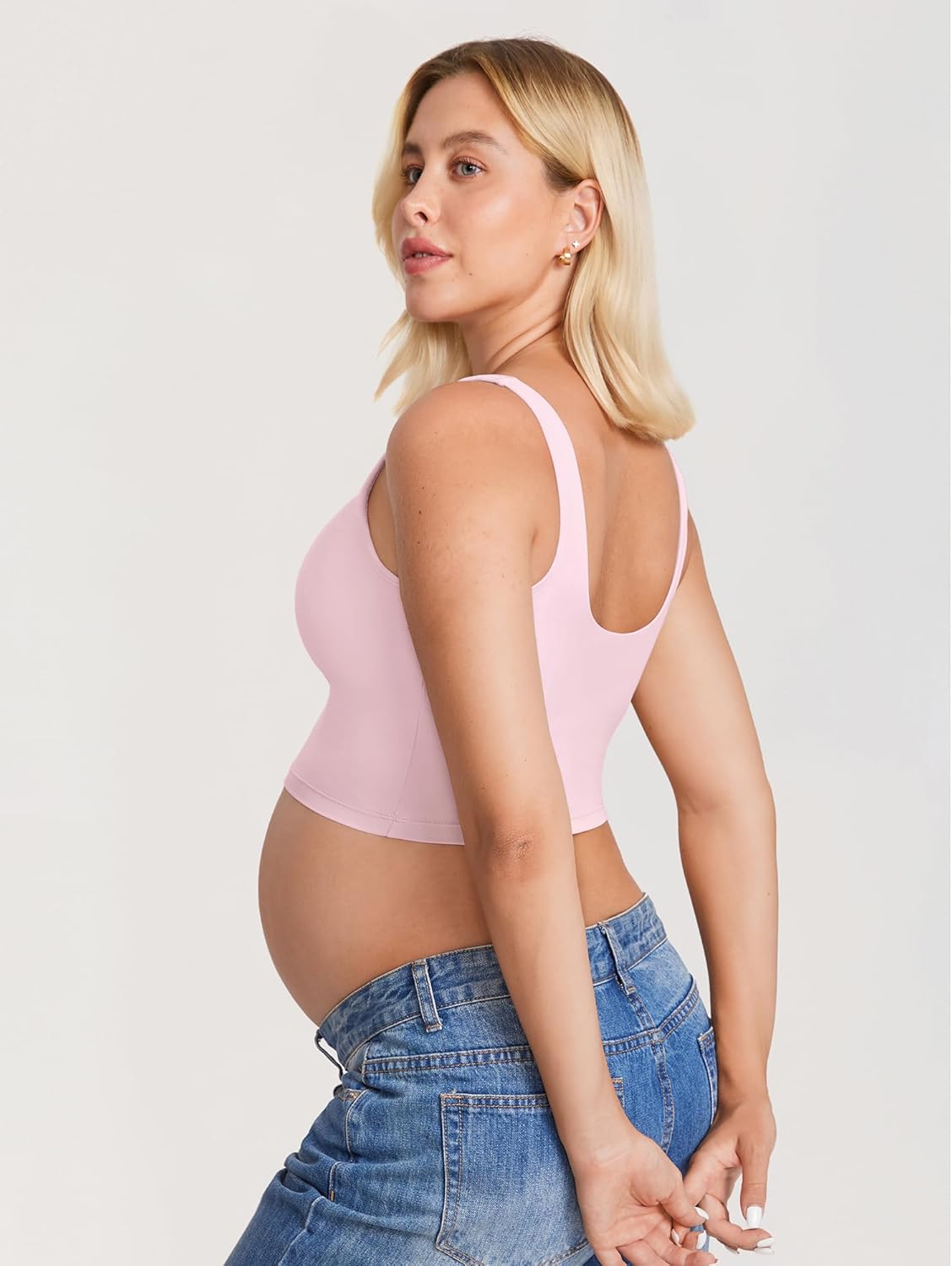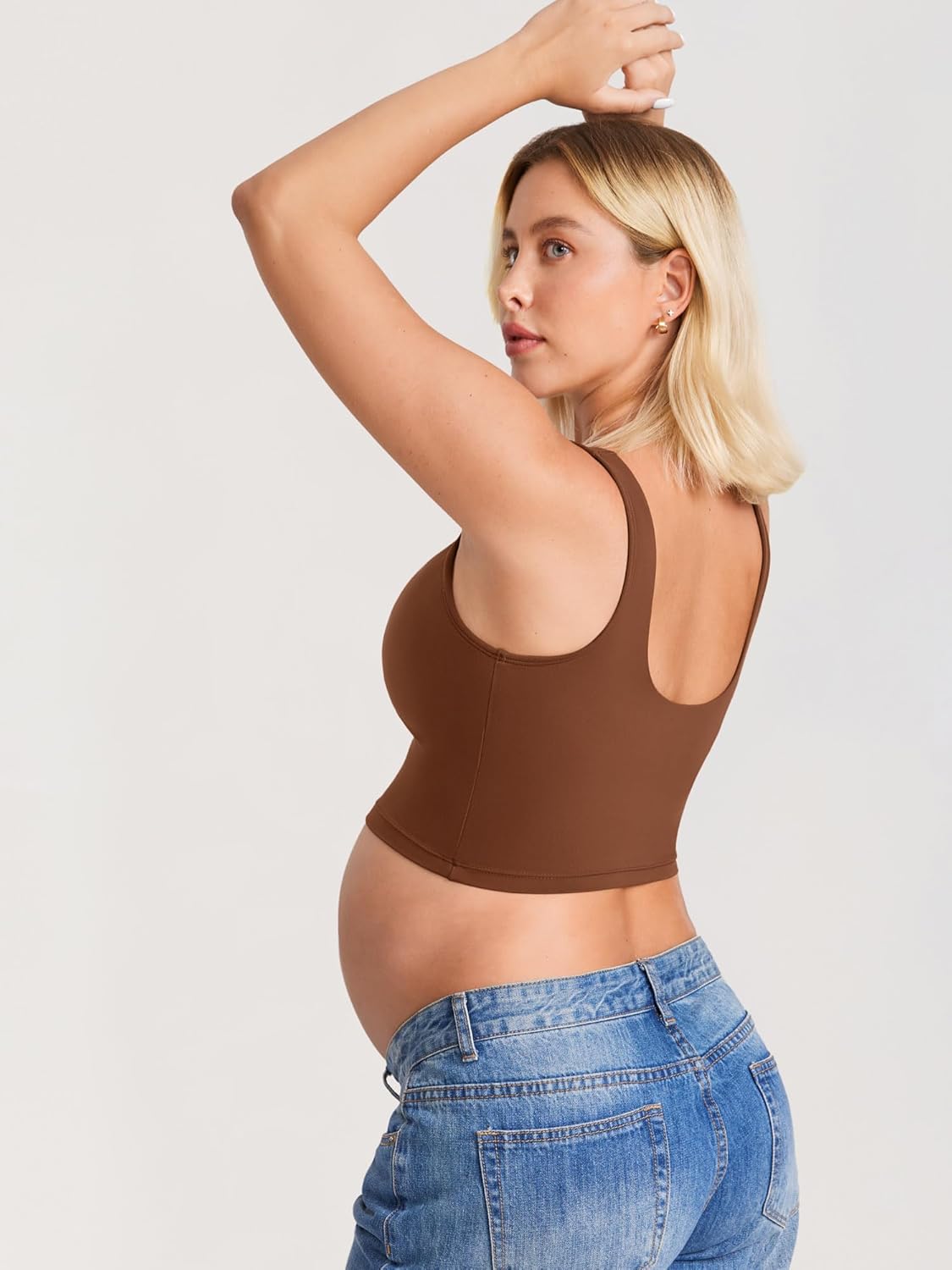 - Adapts to Your Body:Generous stretch accommodates your growing bump during pregnancy, then transitions seamlessly to postpartum life. Wear it as a nursing top, a workout crop, or a loungewear essential—one top, endless possibilities.