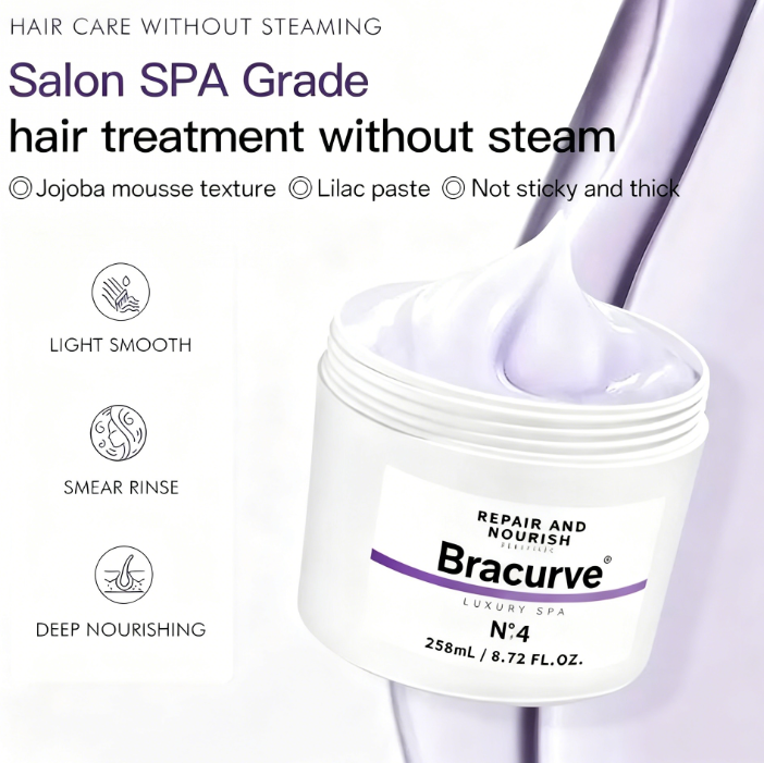 Unlock the power of repair with Bracurve Nº4 Hair Mask. This French designer mask offers a new fragrance upgrade, available in Paris Deauville or Sandalwood Mochi. It deeply penetrates, nourishes, softens, and brightens hair in just one minute. Experience the miracle of repair with Bracurve Nº4.