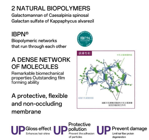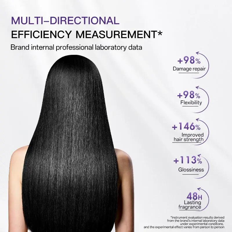 French Jinshan Thermal Water at 99% purity hydrates hair quickly. Amitro R Dihydroxypropyl Arginine Salt prevents drying and static electricity. Hydrolyzed Sweet Almond Protein builds a protective barrier. Moroccan Argan Oil and French Marula Oil enhance shine and texture. These ingredients deeply nourish hair.