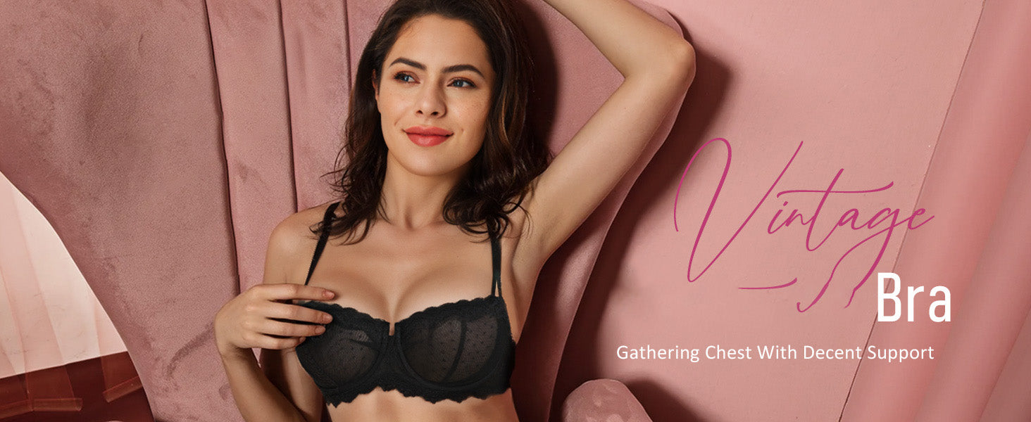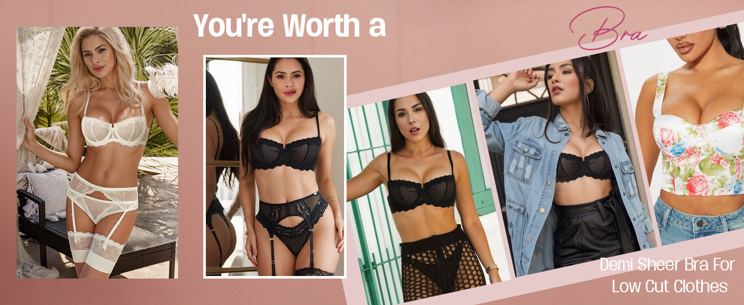 Sexy Lace Bra Underwire Balconette Unlined Demi Sheer Plus Size