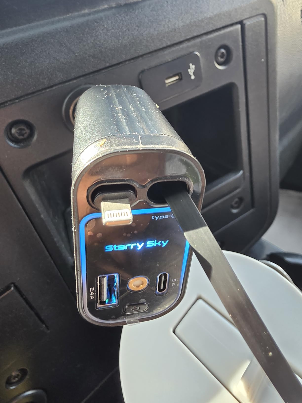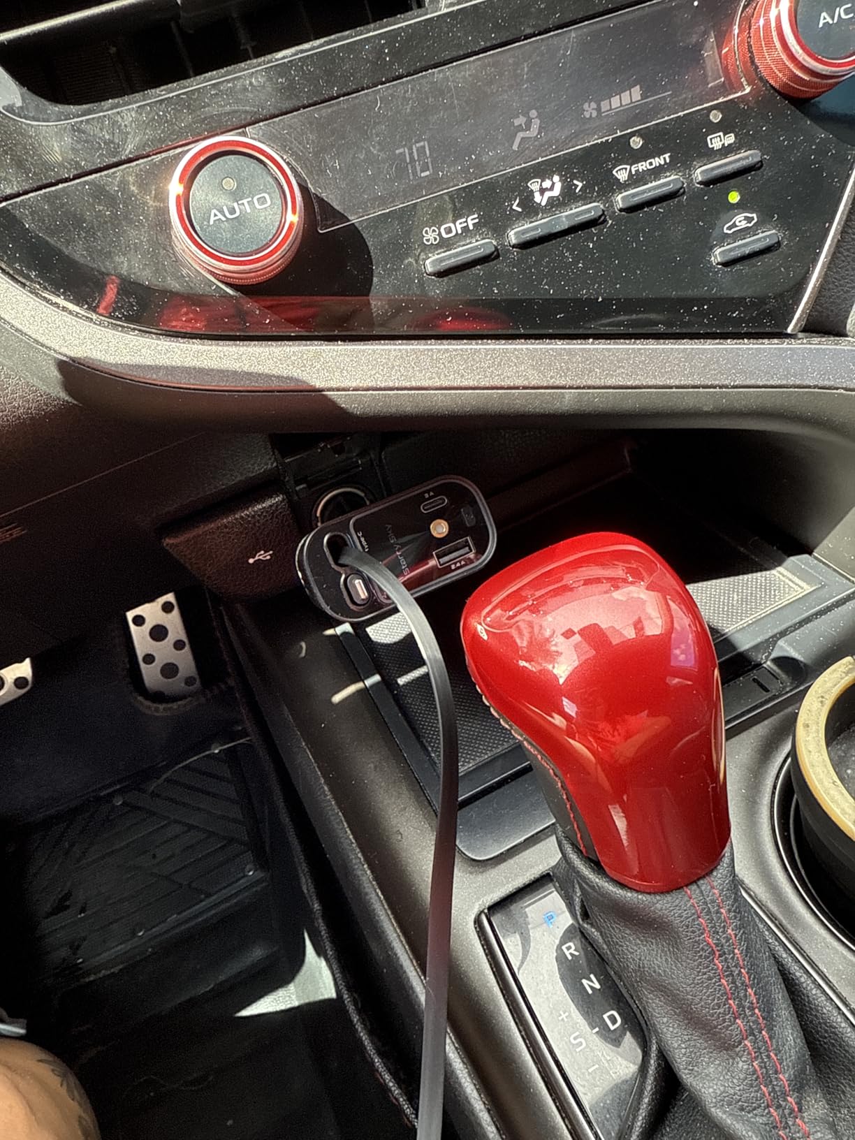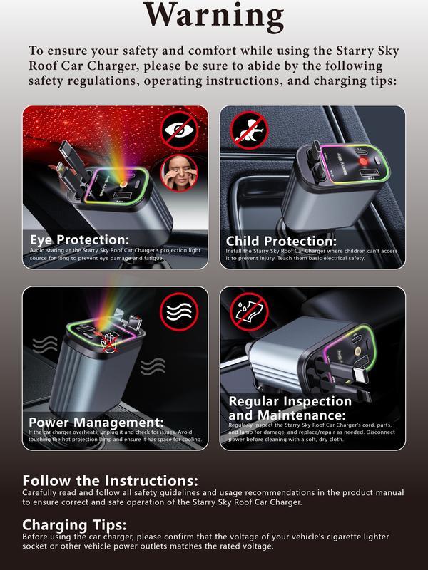 This little gadget is more than just a charger, it turns the whole car into a vibe. The retractable cords make charging neat and easy (no cord clutter!), but the real star is the built-in starlight projector. At night, it throws a galaxy of red stars across the headliner and makes the car feel like youโre cruising under the Milky Way.