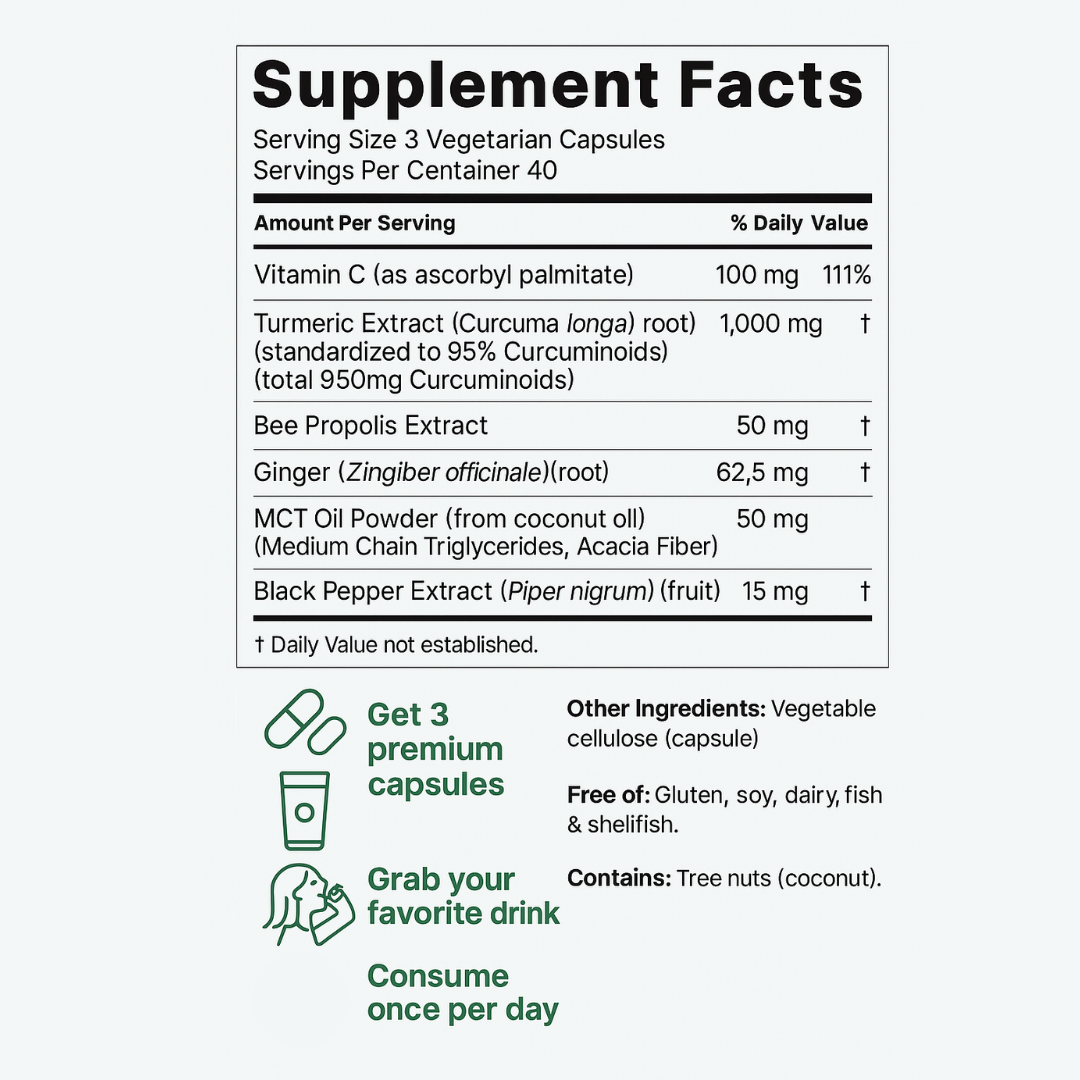powerful antioxidants like Curcuminoids, Gingerols, and Propolis, supportingimmune strength, inflammation balance, and overall well-being