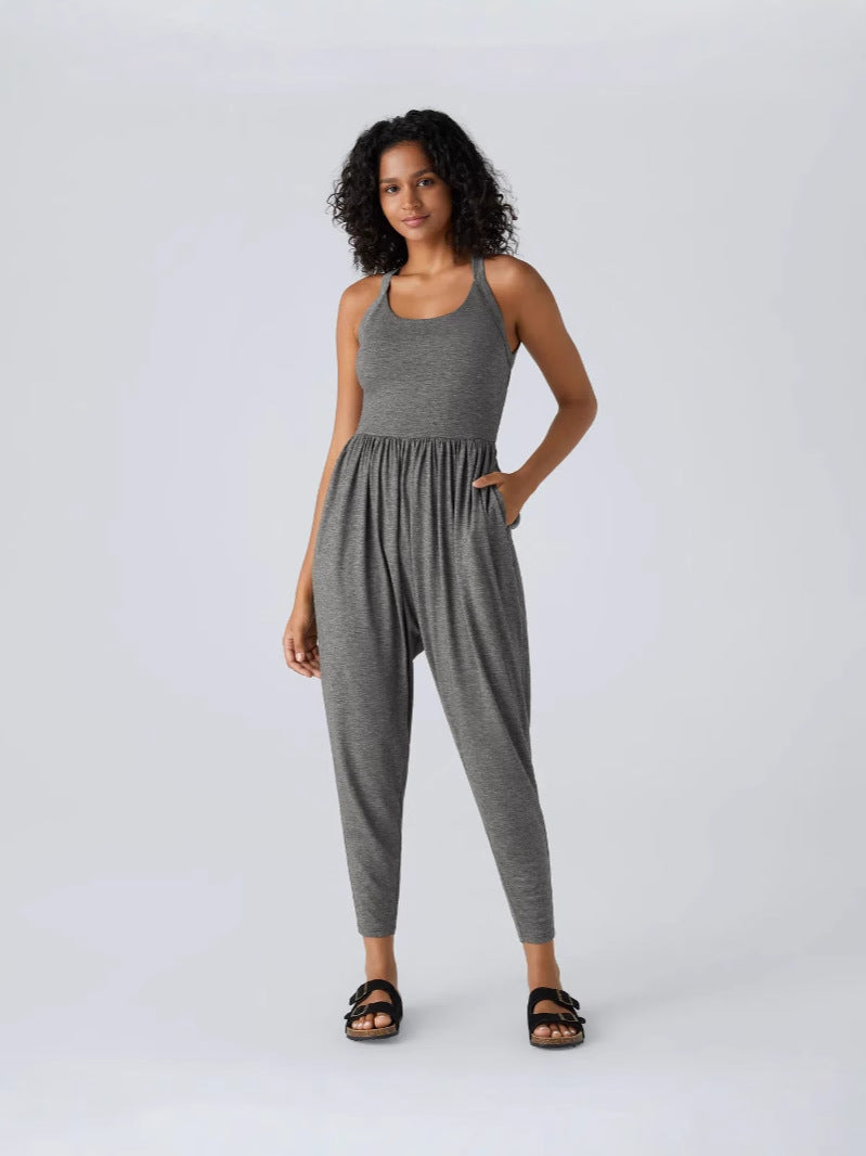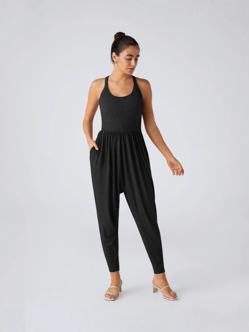Tired of restrictive clothing? This U-neck pocket harem jumpsuit is designed for those who crave freedom and comfort! With its loose harem pants silhouette and flowy fabric, it flatters all body types while allowing full range of motion—perfect for lounging, running errands, or traveling in laid-back style.